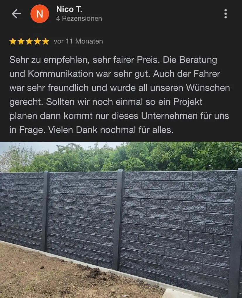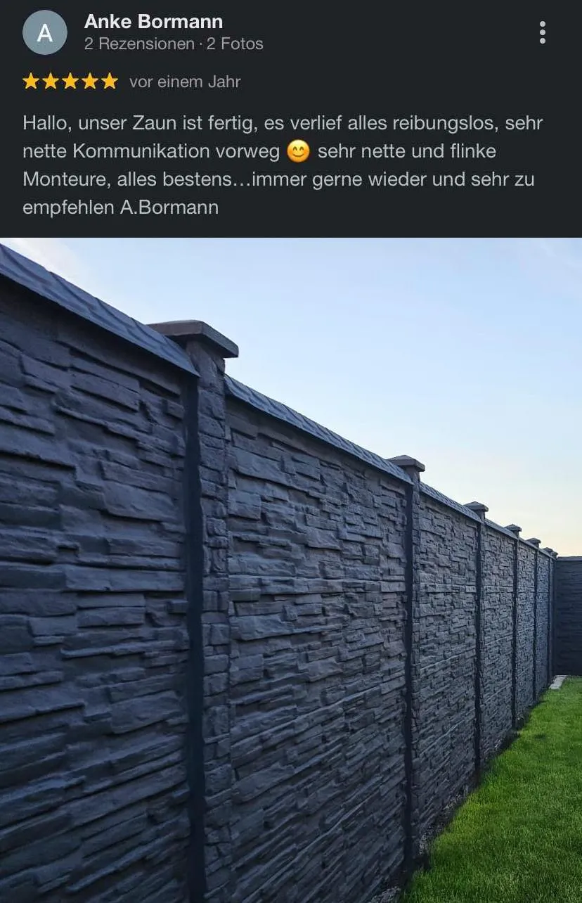 Unser Betonzaun bietet Sicht- und Schallschutz,